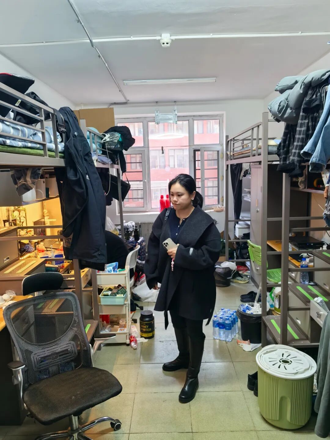 在学生寝室检查环节,检查组深入学生宿舍开展实地检查。老师们仔细查看寝室环境卫生、内务整理情况、电源线路及插排使用规范,重点排查违规使用大功率电器、人离未断电等安全隐患,对现场发现的问题及时提醒并督促整改,全力守护学生住宿安全与生活秩序。