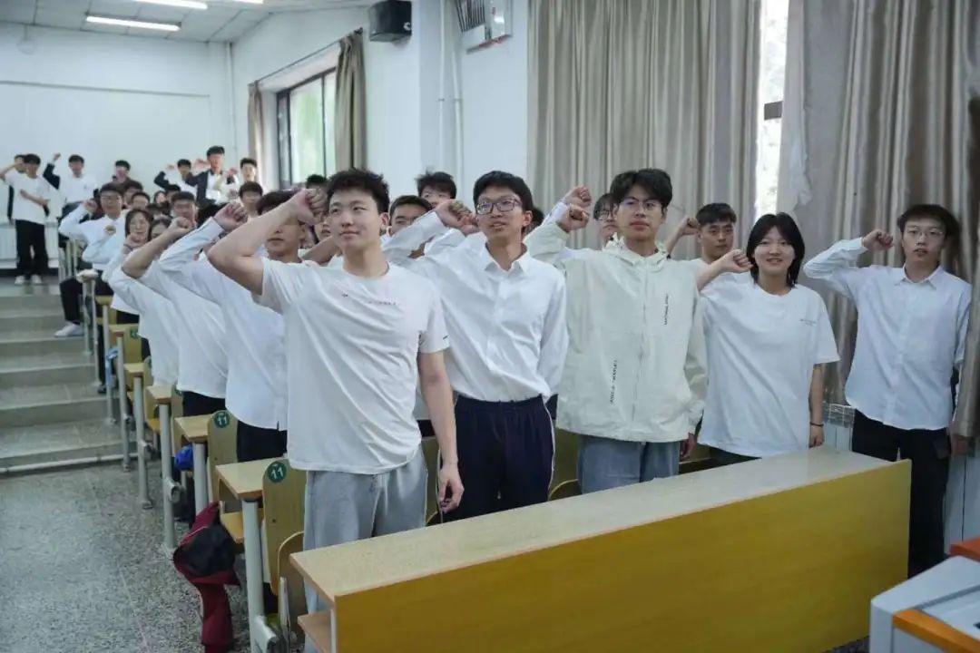 运动员备战运动会每天在跑道上挥汗如雨这种吃苦耐劳精神表示出敬佩和感谢,希望运动员在赛前这段时间要劳逸结合,保证合理作息,科学训练,为了运动会作出最后的冲刺。体育部部长张景皓就本届运动会的相关事项,进行了详细介绍,要求各部门明确分工,积极合作,以应对各种突发状况,使参会人员充分了解了对本届运动会的职责,同时也表示运动会时全体工作人员将保障运动员的后勤和安全。田径队队长王浩雷首先对运动员刻苦训练表示出了感谢,同时对赛前最后的训练作出了安排。优秀运动员孙懿表达出了他对于再次参与校运会的热忱和期待,他认为这不仅是一场比赛,众人拾柴火焰高,这更是一个体验团队协作和个人奋斗的平台,每一份努力都值得被看见。体育部部长张景皓带领运动员们进行了庄重的宣誓,展现了他们的决心和斗志。他们会用行动诠释真正的竞技精神,用汗水浇灌成功的果实。