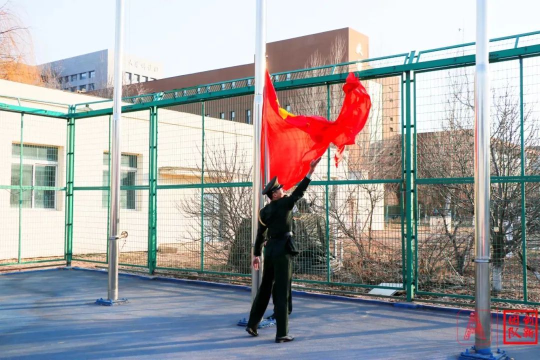 迎着朝阳,英姿飒爽的国旗护卫队队员们护送鲜艳的五星红旗进场。伴随着庄严的《义勇军进行曲》,全场师生庄严肃立,向国旗敬礼,五星红旗冉冉升起,迎风飘扬,雄壮的国歌声响彻在校园上空,爱国情怀在心中激荡。